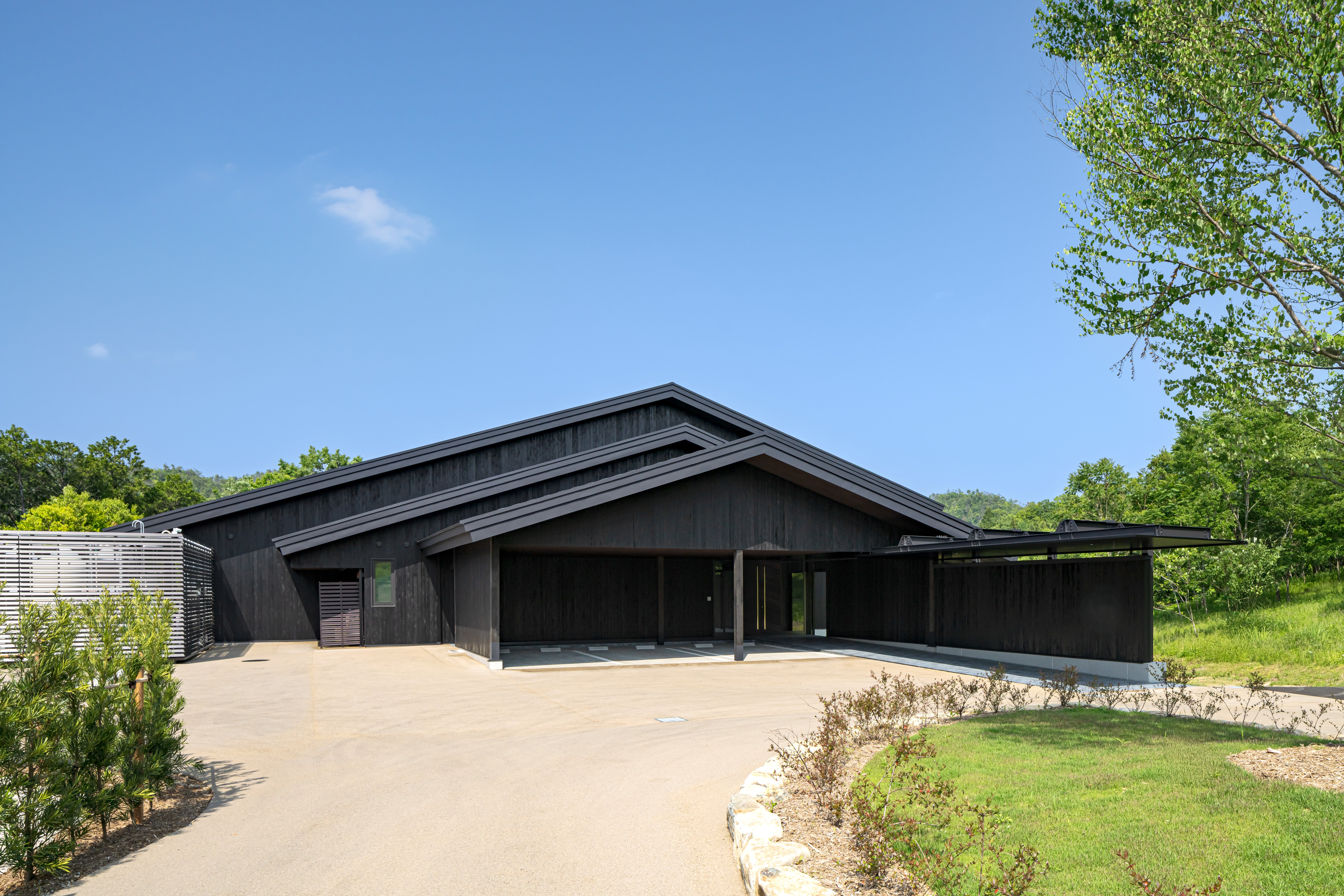 周囲の景観に溶け込むように造りこまれた、木材を用いたモダンな建屋と、地元の木材や焼物など地域の素材を取り入れたインテリアと調和しながらとりまく自然や文化・伝統を織り交ぜたアート郡が特徴的なゲストハウスです。